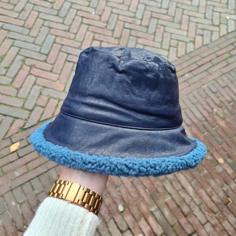 Regenhoed dames blauw met wollen rand